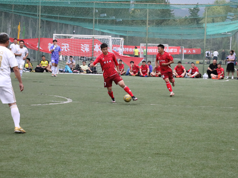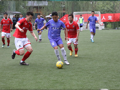 當天下午,公司足球隊最后一場比賽在小雨中拉開帷幕,比賽一開始,雙方就打得十分激烈,拼搶非常積極,足球在場地上來回流轉,場面一度焦灼不下,難以突破。但是公司球員冷靜分析、觀察、尋找著每一次進攻的機會,最終,通過配合,走邊路,下底傳中,于洋中路接球率先突破對方球門,之后,雙方你來我往,攻防轉換不斷發生,但均未破門,上半場比賽快結束時,公司球員禁區犯規,對手點球射門得分,1比1扳平。下半場異邊再戰,公司球員沉著冷靜、密切配合,多次快速搶斷、精準傳球、突破禁區,基本控制著場上的局面,比賽第34分鐘,公司球員馬志杰個人帶球過兩人將球傳于洋后打空門進球。隨后,小李超邊路突破,傳中路遭對手解圍后于洋斷球傳馬飛再得一分,場下喝彩聲隨著一個個進球此起彼伏,場上隊員乘勝追擊,勢如破竹,再進一球。之后,對方迅速反攻,制造了幾次很有威脅的進攻,無奈公司門將神勇發揮,均未被對方攻破球門,終場哨音響起,比分鎖定在4:1,公司足球隊贏得比賽勝利。
